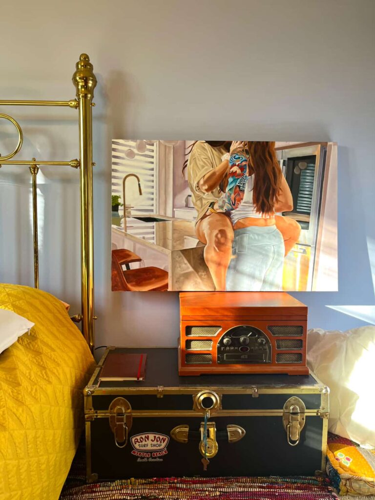 This historic home doubles as both gallery and creative workspace, housing five active studios. In the foyer, you’ll be greeted by artwork from resident artists Amy Adams, Moon Evans, Lisa Parks Godfrey, Kara Razek, and Tamar Rudavsky.