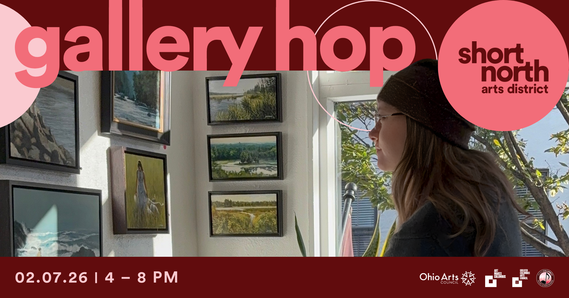This month, explore gallery exhibitions and public art installations throughout Columbus’ historical arts district. Below are some highlights from February’s gallery and business exhibitions; please note that holidays may impact operating hours.