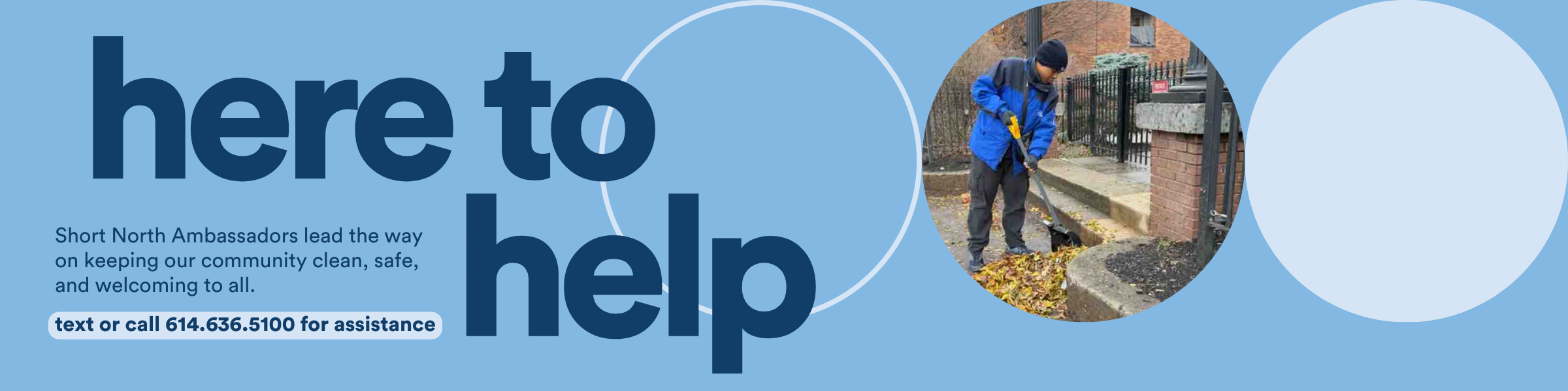 Short North Ambassadors are available from 7am – 9pm Sunday through Wednesday, and 7am – 11pm Thursday through Saturday. Call or text 614.636.5100 for helping hands. Response times may vary based on demand.