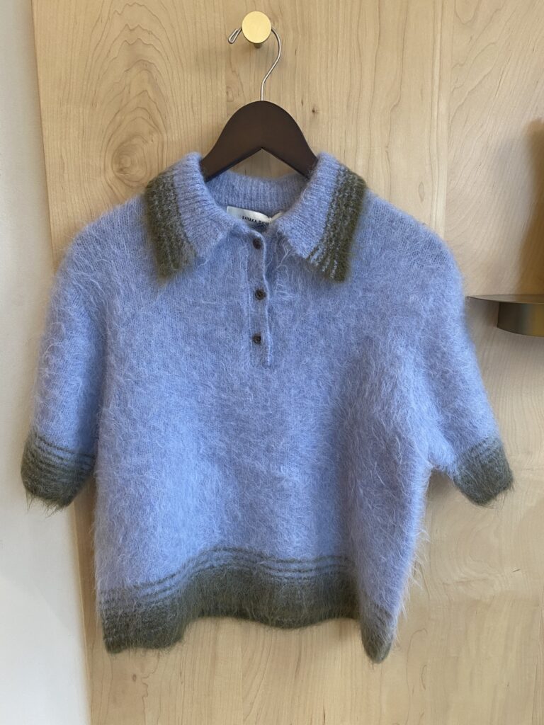 Help the homebody in your life cozy up with this fabulous statement piece. The knit polo crafted from soft, hairy alpaca yarn. The compact silhouette and festive texture give the classic polo a sensual touch.
